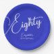 Simply Modern Script Royal Blue 80th Birthday Paper Plate