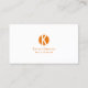 Simply Plain White and Orange with Monogram Modern Business Card