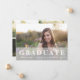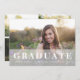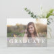 Modern graduation photo announcement features your full-bleed landscape orientated photo on the front, with a sheer white overlay bearing "Graduate" in bold white lettering, as well as your name, school and graduation year. Add three additional photos to the back (two landscape, one portrait) to showcase all your favourites! An elegant and modern choice for 2023 graduates.