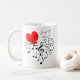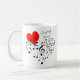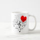 Large silhouette image of musical notes and clefs in the shape of a heart, a small image of a red heart behind the black notes. Mirror images on two sides of the coffee mug. The text Singing heart on one side of the mug, the text Love is in the air on the other side of the mug. Customisable. You can change or delete everything. Feel free to use the Customise button to fine-tune the design in accordance with your needs, do not forget to choose another style of the mug.