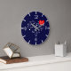 Large silhouette image of musical notes and clefs in the shape of a heart, a small image of a red heart behind the black notes. One-of-a-kind romantic dark blue wall clock. Feel free to use the Customise button to change the colour of the background and fine-tune the design in accordance with your needs.