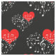 Singing Heart Pattern. Red Hearts, White Notes Fabric