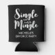 Single and ready to mingle custom divorce party Can Coolers. Cute black and white script typography beverage holders. Custom design with stylish hand lettering design for divorced women and single girls. Available in black and other cool colours too. Fun gift for single ladies. Personalise with your own names. Double sided print. Great for girls weekend, trip, gathering, meeting, date night etc.