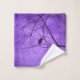 This wash cloth has the silhouette of a single black crow sitting in the branches of a barren black tree against a deep purple sky.