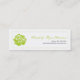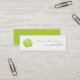 A single blossom in lime green calls attention to this skinny business card. A great way to introduce yourself and easy to carry around. Add whatever contact information you please. Available in alternate colours with matching products.
