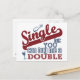 "Single - but you can buy me a double". Add your own text on the backside, if you wish. See my store for more items with, and colour choices of, this design.
