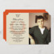 Deep orange elegant laurel wreath and solid colour background on reverse. Add your photo senior portrait to this formal classical announcement highlighted by a Single letter initial classic monogram. Handsome formal style for any male or female graduate. Modern wheat cream beige graduation announcement is ideal for college level graduates or mature sophisticated high school students. Formal Classic Elegant design with royal laurel wreath, personalised monogram, and traditional fonts. Great option in place of official school announcements. Formal to traditional and classic graduation invite suitable to men or women.