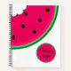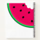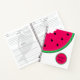 A recipe binder decorated with a single image of a bright, juicy red watermelon slice with a bite taken out, on a white background. The image covers front, back and spine of the binder. On both spine and front cover is a matching coloured circle that you can personalise with your name. The design is simple and modern.