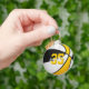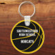 This cool basketball themed keychain features the realistic image of a basketball that has alternating black, white and gold recolored panels on the front and a simple black basketball shape on the back - easily personalise with player name & jersey number on the front and school or club name & mascot name on the back - by katz_d_zynes