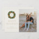 Share your warmest wishes this season with this holiday photo card from the Rustic Dried Orange and Pine Collection by Porch and Gable Design. This design balances modern photo personalisation with timeless, rustic charm. One half of the horizontal card is reserved for your favourite family portrait, while the other features a beautiful watercolor pine wreath adorned with dried orange slices, cinnamon sticks, eucalyptus leaves, pinecones, and little brass bells for an elegant natural holiday look.