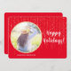 Create a memorable greeting with this custom holiday design, featuring a circular photo frame with a shimmering gold glitter-like border for your personal image, set against a vibrant red background with small gold dots resembling falling lights or ornaments. The elegant white "Happy Holidays!" script adds a festive touch, with a name in white at the bottom for personalisation. Ideal for families and individuals, this artwork lets you craft unique holiday messages, bringing warmth and joy to your celebrations. Perfect for sharing personalised cheer, it adds a sparkling, custom element to your seasonal greetings.