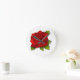 Single Red Rose on White Round Clock