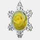 Beautiful single yellow rose pewter snowflake christmas ornament
