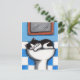 Whimsical cat art postcard. A black and white cat asleep in the bathroom sink. Created from an original painting 2008 Lisa Marie Robinson