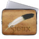 The sleeve is made of nice feeling material and seems very durable. I'm not sure how easy it'll be to clean, but the construction seems sound and the fabric is quick thick. I also like the double zipper. The printing is lovely and appears durable. The white on black contrast is nice, and the design very elegant.