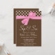 Sip and See Pink Brown Polka Dot Bow Invitation