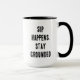 Sip Happens Funny Modern Simple Black and White Mug