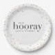 sip sip hooray birthday party paper plate. With modern graphic gold effect dots and bold graphic text this birthday party design is sure to suit men and women of all ages looking for a classy party theme.