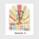 Brighten up your summer vibes with this cute retro design. A yellow, red and orange sun is the backdrop for a black outline graphic of a cocktail glass with a straw and a slice of fruit. Below in black and colourful groovy lettering it reads "Sippin' on Summer Vibes'. A fun, bright happy vibe for those long summer days.