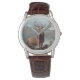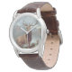 The watch looks really great! Very sharp and well done. The leather band is really nice, though for a man's watch I think it should be longer. Unfortunately, it isn't big enough for my husband's wrist but I will get a replacement because he is very excited to wear it!