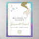 This bachelorette party welcome sign features a mermaid inspired background with mermaid tails and sea shells. Pair with anything in the SIREN Collection for a cohesive look.