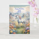 Send wishes for a magical birthday. Wish your sister a happy unicorn birthday. A dreamy image of a white unicorn with a rainbow main standing in a field of flowers. in the background are majestic mountains.The perfect card to give those who love magical and mystical unicorns.