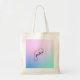 The word Sister incorporated into the top of a heart and set against a graduated pastel background on a budget tote