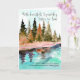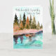 A heartfelt Sympathy card for Sister-in-Law who has lost her husband, and you a brother, a gentle religious message at the bottom, the design a forest moving out of summer greens to fall (autumn) hues and tones, with movement in the water. A gentle card with a timeless watercolor design