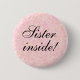 Black print "Sister inside!" on yellow-to-pink pattern. Suitable at birth or baby shower party, or to honour a sister. Text can easily be customised.
