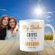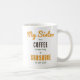 Celebrate your sister and brighten her day with this delightful mug. The elegant mug features a colourful floral bouquet of orange, yellow, and white blooms on one side, ideal for brightening up the kitchen. On the other side is an uplifting quote: “My sister has coffee in her cup & sunshine in her soul” on the other. Perfect for any occasion, whether it’s your sister's birthday, or just to show her how much she’s appreciated, this mug makes a thoughtful and charming gift. The floral mug is ideal for the sister who loves her coffee and lives life with a sunny disposition.