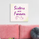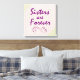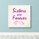 Sisters are Forever Quote Canvas Prints with shabby chic style background in soft pink and grey with light lime green faux lace edges. See more at our store, Quote Life Boutique. Link below: