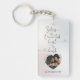 A special and memorable photo gift keychain for sisters. The design features a single heart frame photo layout to display your own special photo. "Sisters Are Connected Heart to Heart" is designed in a stylish black brush script and heart design calligraphy and customised with sister's names. The background is coloured in a sheer light pearl gradient. The reverse side features a second photo placeholder. Send a memorable and special gift to yourself and your sisters that you will cherish forever.