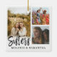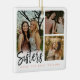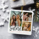 A special and memorable photo collage ornament gift for sisters. The design features six photos to display your own special sister photos with three photos on the front and three on the back. "Sisters" is designed in a stylish black brush script modern calligraphy with "make the best friends" displayed in a modern typographic design. The reverse side is customised with the sister's names. Send a memorable and special gift to yourself and your sister(s) that you both will cherish forever. Note: colours can be changed to suit your preference.