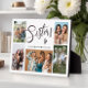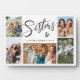 Modern, trendy photo collage plaque features 5 photos, typography script ''sisters'' on a white background and names. Perfect as a gift or a keepsake.