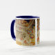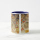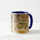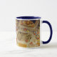 White and navy blue 11 oz. ringer combo mug with an image, on both sides, of one of the many beautiful ceilings in the Sistine Chapel of the Vatican Museum, Vatican City. See matching square ceramic tile and coasters. See the entire Italy Mug collection in the HOME section.