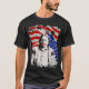 I give wanted to give this a 4 instead of a 5 because these Basic DARK T0shirts run unexpectedly SLIM or Narrow. Which is great if you do not have a potbelly, but I have a paunch. It isn't the shirt's fault that I've got a beer belly. The design and shirt itself is a quality cotton shirt. The color is more of a deep purple, but still a very pretty color. The Basic DARK T-shirts run a bit SLIMMER than the Basic Ts. The neck is a fraction narrower (or seems to be narrower) also. I'm a paunchy middle-aged woman and my neck is 12 inches (31cm) thick and the neckline fell about the same as in the photo of the man, and I had the desire to tug it a bit. So if you're a thick necked man or like loose shirts, be aware these are slimmer shirts. Once I get rid of my lockdown paunch it'll look great. The shirt washed well in cold water with no apparent bleeding. We don't have a dryer, so it hung dry. Did not shrink. Love the colors and the design. The design looks smaller on my shirt than it does on the model on-line. But still, it looks good on the shirt. The printing looks as it does on the model, just the size seems fractionally smaller. Washed garment in cold water, hung dry and design appeared unaffected.