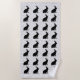 This custom beach towel has rows of sitting rabbits done in black silhouette on a white background with little black polka dots.