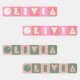 Rectangular iron-on patch for clothing or accessories with customisable 6-letter girl's name.