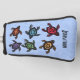This custom golf club cover for your putters has six abstract black turtles with colourfully marked shells in different colours on a light blue background. Customise your name with the template.
