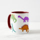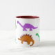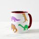 Tyrannosaurs, stegosaurs, and apatosaurs make their way across this mug.