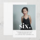 A simple Sixth Birthday invitation featuring your own photo and the words 'six' over the top.