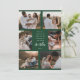Holiday Photo Card featuring six photos with room for a personalised message and the family name in a modern script font with a green background