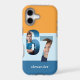 Join in the fun with this 67 custom photo phone case! This modern and eye-catching case features two of your own photos, displayed within the numbers 6 and 7. The bold orange and blue color block background provides a modern aesthetic for your personalized pictures. Simply click 'Personalize' to upload your images into the number templates, and customize the name at the bottom to create a unique phone accessory.