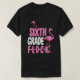 I give wanted to give this a 4 instead of a 5 because these Basic DARK T0shirts run unexpectedly SLIM or Narrow. Which is great if you do not have a potbelly, but I have a paunch. It isn't the shirt's fault that I've got a beer belly. The design and shirt itself is a quality cotton shirt. The color is more of a deep purple, but still a very pretty color. The Basic DARK T-shirts run a bit SLIMMER than the Basic Ts. The neck is a fraction narrower (or seems to be narrower) also. I'm a paunchy middle-aged woman and my neck is 12 inches (31cm) thick and the neckline fell about the same as in the photo of the man, and I had the desire to tug it a bit. So if you're a thick necked man or like loose shirts, be aware these are slimmer shirts. Once I get rid of my lockdown paunch it'll look great. The shirt washed well in cold water with no apparent bleeding. We don't have a dryer, so it hung dry. Did not shrink. Love the colors and the design. The design looks smaller on my shirt than it does on the model on-line. But still, it looks good on the shirt. The printing looks as it does on the model, just the size seems fractionally smaller. Washed garment in cold water, hung dry and design appeared unaffected.