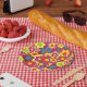 Flower child brightly coloured flowers for a hippy style sixties party with a flower power theme.