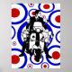 Sixties Mod scooter boy on retro circles Poster