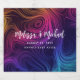 Wedding sparkling wine bottle labels with a cool pattern with a sixties vibes. Rainbow coloured circles and swirls.