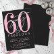 Introducing a chic and stylish "60 and Fabulous" birthday party invitation, perfect for celebrating this milestone with flair. The sleek design features a bold black background with "60 and Fabulous" prominently displayed at the top in elegant bold serif and script calligraphy. The text throughout the invitation combines modern and script fonts in white and pink, creating a fun yet sophisticated contrast against the black backdrop. Ideal for a fabulous 60th birthday celebration, with customizable background colors, fonts, and frame to match your style. Modern 60th Birthday Party Invitation Black Pink White Bold Script Fun Fabulous Typography.