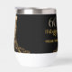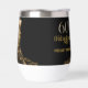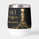Elegant Sixty and Fabulous Gold Dress Black 60th Birthday Thermal Wine Tumbler that you can personalize for your sixtieth birthday party celebration. This thermal wine tumbler features a gold and diamond-studded 60 and a sparkling gold gown. The words Fabulous and the name are set using trending bold font typography.