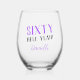 Celebrate sixty in fierce, fabulous fashion with this bold and sassy personalised stemless wine glass! Featuring the phrase “SIXTY HELL YEAH!” in a vibrant purple and black combo, this glass is perfect for toasting to milestones, memories, and major birthday vibes. Add any name to create a unique party keepsake or gift.